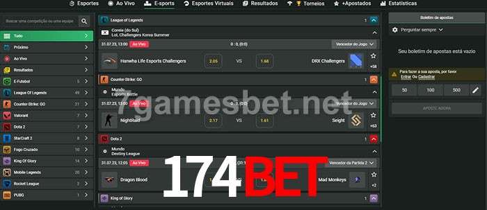 O 174bet oferece uma grande seleção de opções de apostas em e-sports com probabilidades competitivas